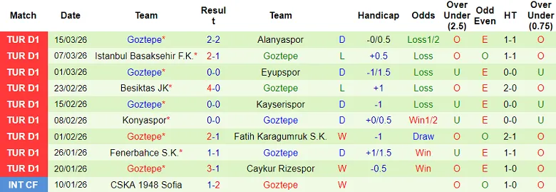 – Kết quả 10 trận gần nhất của Goztepe