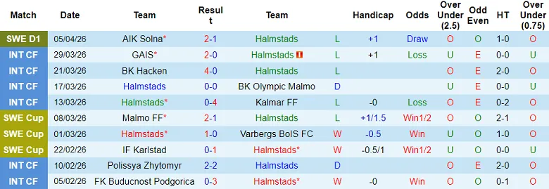 – Kết quả 10 trận gần nhất của Halmstads.