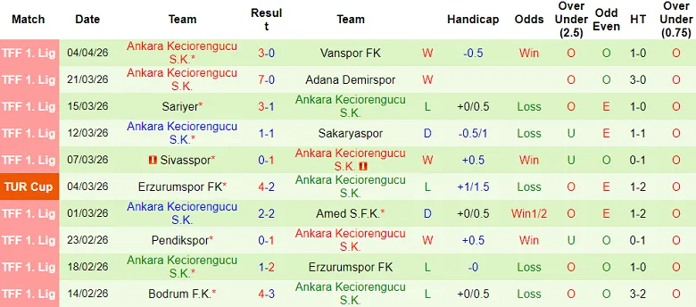 – Thống kê kết quả 10 trận gần đây của Keciorengucu.