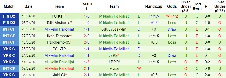 – Thống kê kết quả 10 trận gần nhất của MP Mikkeli