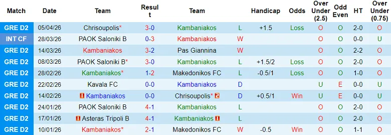 – Kết quả 10 trận gần nhất của Kampaniakos