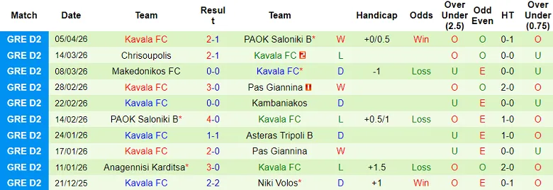 – Kết quả 10 trận gần nhất của Kavala