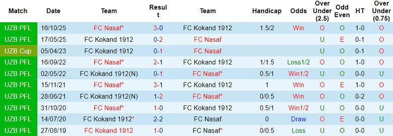 Kokand 1912 đã thua cả 3 lần tiếp đón Nasaf trong khuôn khổ giải VĐQG Uzbekistan kể từ tháng 6/2021. Đội bóng này cũng đã thất bại theo tỷ lệ Handicap trong 2/3 trận sân nhà gần nhất tại Uzbekistan Super League. Rõ ràng, Kokand 1912 không phải là lựa chọn đáng tin cậy.