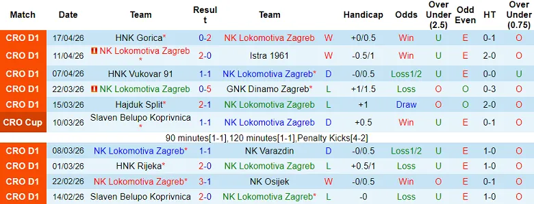 – Kết quả 10 trận gần đây của Lokomotiva Zagreb