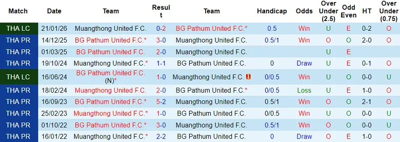 Bốn trong số 5 lần Muangthong United tiếp BG Pathum United tại Thai League từ tháng 3/2021 không có trận nào ghi nhiều hơn 2 bàn thắng. Kịch bản quen thuộc này dự kiến sẽ lặp lại trong trận đấu vòng 29 mùa 2025/26.