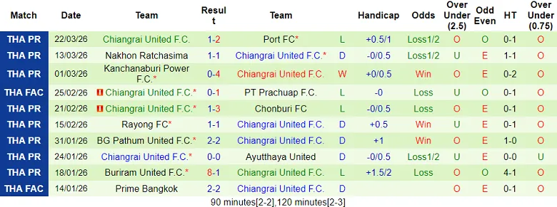 – Kết quả 10 trận gần nhất của Chiangrai.