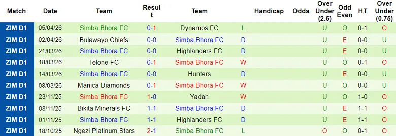 Có đến 9/10 trận sân khách gần đây của Simba Bhora trong khuôn khổ Zimbabwe Premier League không có nhiều hơn 2 bàn thắng. Kịch bản quen thuộc này hứa hẹn sẽ tiếp tục lặp lại khi Simba Bhora thi đấu ở vòng 6 mùa 2026.