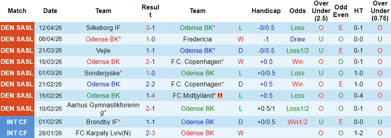 – Kết quả 10 trận gần nhất của Odense