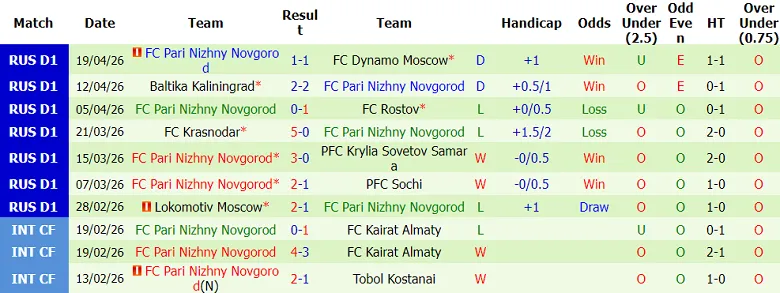 – Thống kê kết quả 10 trận gần nhất của Nizhny Novgorod