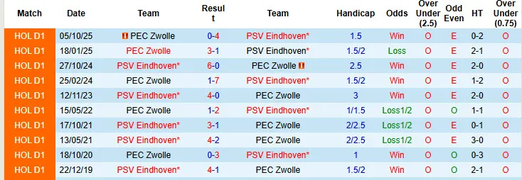 PSV đã thắng kèo tới 4 trong số 5 lần đối đầu gần đây với PEC Zwolle. Họ cũng đã thắng kèo trong 2 trận đấu gần nhất khi chấp từ 2 bàn trở lên. Trong khi đó, PEC Zwolle không thể thắng kèo trong 3 trong 4 trận đấu gần đây tại giải VĐQG Hà Lan.