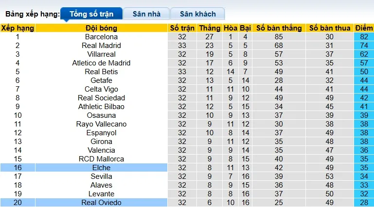 Ở phía bên kia, Elche cũng đã thăng hạng lên La Liga năm ngoái và tương tự như Oviedo, mục tiêu của họ cũng là trụ hạng. Trong giai đoạn đầu mùa, đội khách thể hiện phong độ ấn tượng và luôn giữ vị trí giữa bảng xếp hạng. Tuy nhiên, họ đã trải qua một giai đoạn tồi tệ đầu năm 2026 khi không giành được chiến thắng trong 11 trận liên tiếp tại La Liga, khiến cho tình hình của họ trở nên rất khó khăn.