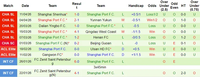 – Thống kê kết quả 10 trận đấu gần nhất của Shanghai Port.