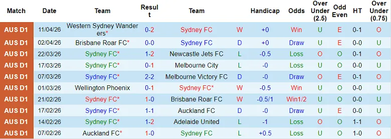 – Kết quả 10 trận gần nhất của Sydney FC.