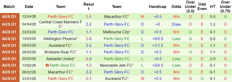 – Kết quả 10 trận gần nhất của Perth Glory.