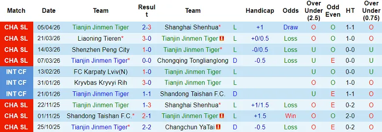 – Thống kê kết quả 10 trận gần nhất của Tianjin.
