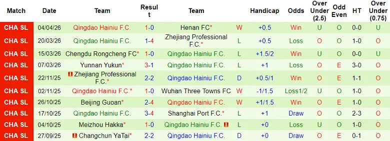 – Thống kê kết quả 10 trận gần nhất của Qingdao Hainiu.