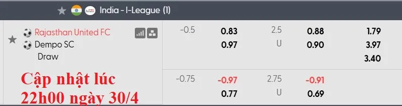Rajasthan United vẫn được đánh giá nhỉnh hơn Dempo trong cuộc đối đầu này. Họ đã thắng kèo 5/10 trận gần nhất tại giải hạng nhất Ấn Độ (có mở kèo), trong khi đối thủ chỉ có 4 trận. Mức kèo -1/2 cho thấy sự tin tưởng vào Rajasthan United.