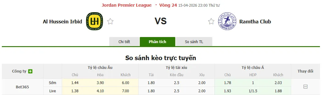 Al Hussein Irbid đã thắng kèo tới 7 trong 9 trận đấu gần đây có tỷ lệ cược chấp châu Á. Trong khi đó, Ramtha đã để thua kèo tới 3 lần trong 6 trận gần nhất, khiến người hâm mộ châu Á lo lắng.