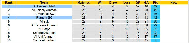 Al Hussein Irbid đã trải qua 7 trận bất bại khi đối đầu với Ramtha tại giải VĐQG Jordan. Họ đã giành chiến thắng trong 11 trên 14 trận gần đây. Trong khi đó, Ramtha không thắng trong 9/12 trận gần nhất trên mọi đấu trường.