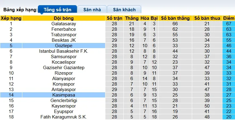 Thống kê phong độ, lịch sử đối đầu của Goztepe vs Kasimpasa