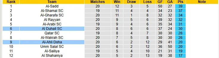 Al-Ahli Doha đã bất bại trong 2 trận đấu gần đây gặp Al Duhail (thắng 1, hòa 1). Đội bóng này vừa trải qua chuỗi 3 trận bất bại tại giải VĐQG Qatar. Trong khi đó, Al Duhail không có nổi chiến thắng trong 8/10 trận đấu gần đây khi thi đấu trên sân khách.