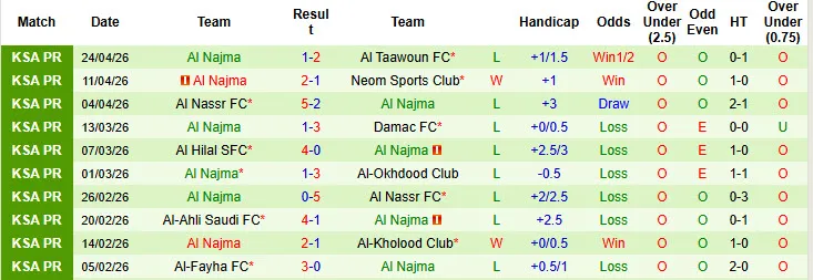 Al-Khaleej đã thua kèo tới 3 trong 4 trận đối đầu gần đây với Al Najma. Họ cũng không thể thắng kèo trong 12/13 trận đấu gần nhất tại giải VĐQG Saudi Arabia. Trong khi đó, Al Najma vừa trải qua 3 trận đấu liên tiếp không thua kèo tại giải đấu này.
