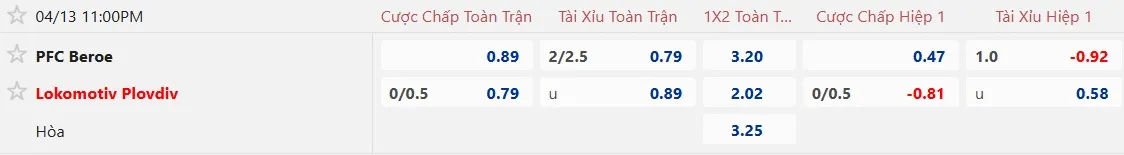 Kèo nhà cái Beroe vs Lokomotiv Plovdiv