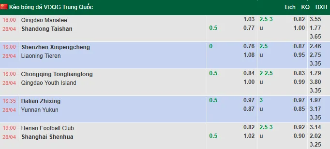 🏆 KQBD Trung Quốc 🕐 18h35 ngày 26/04 Nhận định bóng đá