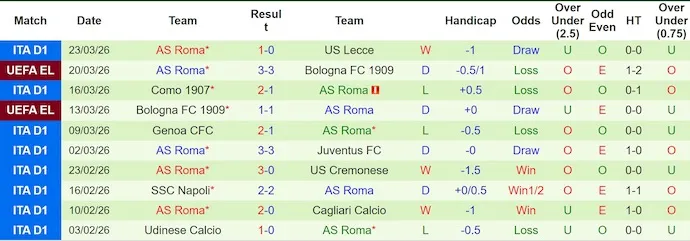 AS Roma thậm chí còn thiếu ổn định hơn. Trong 10 trận gần nhất, đội bóng thủ đô có 3 chiến thắng, 4 hòa và 3 thua, nhưng thành tích sân khách lại đặc biệt đáng lo ngại khi 5 chuyến hành quân gần đây không thắng, trong đó có 3 thất bại. Khi áp lực top 4 ngày càng gia tăng, sự thiếu ổn định này khiến Roma dễ rơi vào thế bị động.
