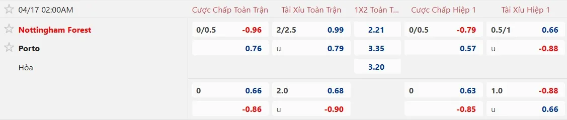 Thành tích thi đấu trên sân nhà của Nottingham đang khiến các nhà đầu tư phải lo ngại, khi họ đã thua kèo châu Á 7 trận liên tiếp gần đây, bao gồm 3 trận cũng chấp kèo châu Á 1/4 trái như trận đấu này. Trong khi đó, Porto đã thắng kèo châu Á 6/8 trận đấu gần đây trên mọi đấu trường.