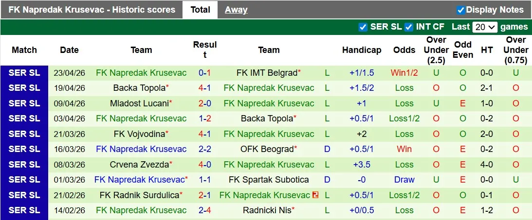 Trong 10 trận gần đây, 7 trận của Javor đều không có quá 2 bàn thắng được ghi. Trong khi đó, Napredak từ đầu mùa chỉ ghi được 27 bàn, trung bình chưa đến 1 bàn/trận. Khả năng có nhiều bàn thắng trong trận này rõ ràng là không cao.