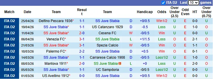 Thống kê phong độ 10 trận gần nhất của Juve Stabia
