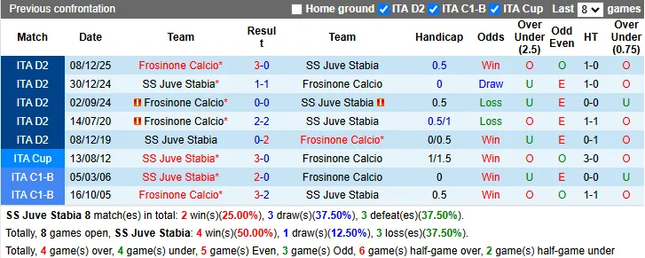 Lịch sử đối đầu giữa Juve Stabia và Frosinone
