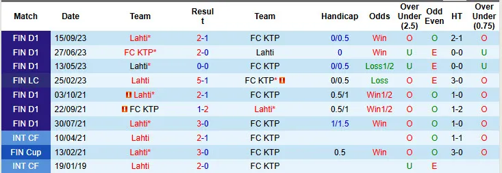 Trong 9 lần đối đầu gần đây giữa KTP và Lahti, có tới 7 trận có ít nhất 3 bàn thắng được ghi mỗi trận. 3 trong 5 trận đấu mới đây của KTP và 4/6 trận gần nhất của Lahti đều có tỷ số tài 2 3/4.