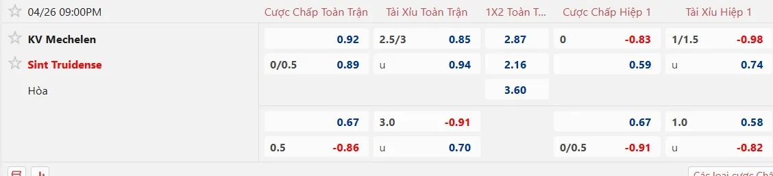 Phân tích tỷ lệ soi kèo Mechelen vs Sint-Truidense