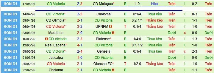 Olancho hiện đang có 27 điểm sau 16 vòng đấu, đứng thứ 4 trên bảng xếp hạng, trong khi Victoria chỉ có 13 điểm và đang xếp cuối bảng.