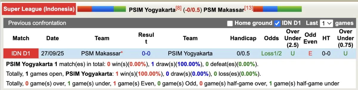 Trong trận đấu xa nhà gần đây, PSM Makassar bị đánh giá thấp hơn nhưng đã vượt qua rào cản kèo. Hơn nữa, 4 lần thi đấu trên sân nhà của PSIM Yogyakarta, đội bóng này đều không thể vượt qua kèo handicap. Có lẽ đội khách sẽ là sự lựa chọn tốt hơn trong cuộc đối đầu này.