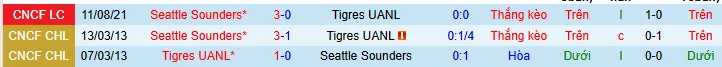 + Trong 3 lần đối đầu trước đây, Tigres UANL có 0 chiến thắng, 1 trận hòa và 2 thất bại trước Seattle Sounders theo kèo châu Á.