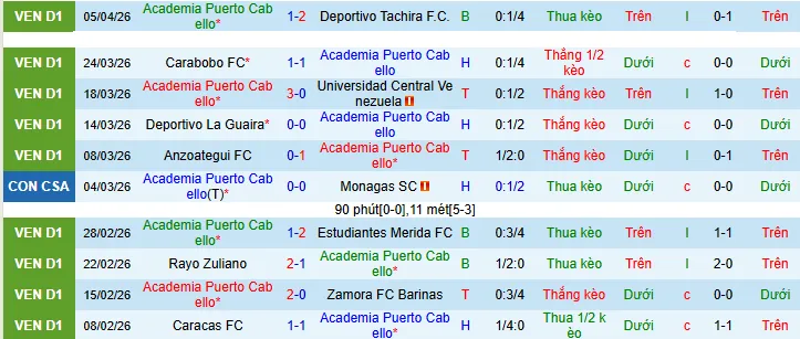 + Academia đã thắng 4 trận và thua 1 trận trong 5 trận gần đây theo kèo châu Á.