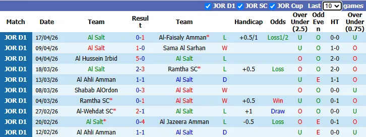 Thống kê phong độ 10 trận gần nhất của Al Salt