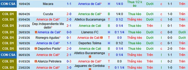 + America de Cali đã để thua 6 trong 8 trận gần đây theo kèo châu Á.