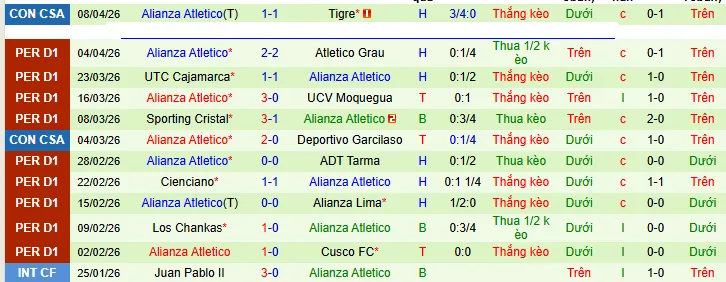 + Alianza Atletico đã thắng 6 trong 9 trận vừa qua theo kèo châu Á.