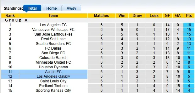 Hiện tại, Austin đang đứng ở vị trí thứ 11 trong bảng xếp hạng các đội bóng khu vực miền Tây của nước Mỹ. Ngược lại, L.A. Galaxy xếp ngay sau với 1 điểm ít hơn. Với chỉ 5 điểm trong tay, Galaxy đã có một khởi đầu mùa giải không như mong đợi.