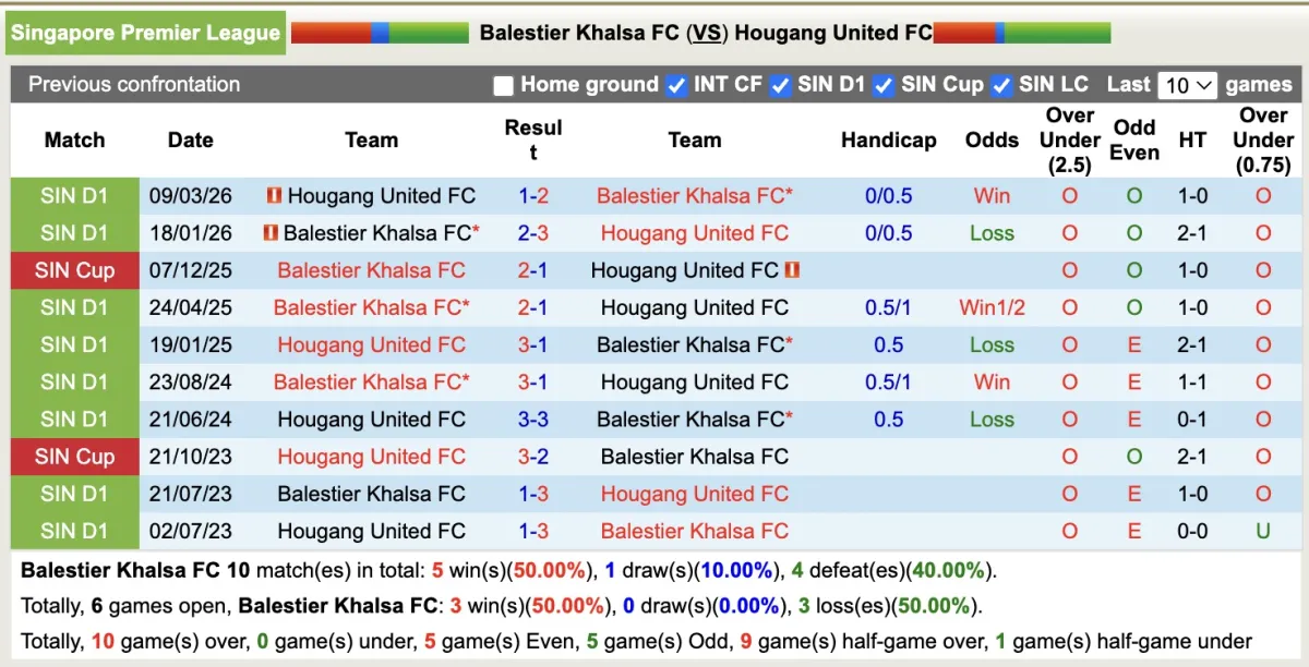 Trong 4/5 trận đấu gần đây, Hougang United đã không thành công trong việc vượt qua kèo châu Á. Ngược lại, Balestier Khalsa đã không thua kèo trong 7/8 trận gần nhất và có đến 6 lần thắng kèo; có lẽ đội chủ nhà sẽ có lợi thế trong trận đấu này.