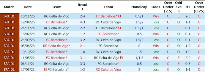 Trong 10 lần chạm trán gần nhất, Barcelona đã thắng 6, hòa 2 và thua 2 trước Celta Vigo. Các cuộc đối đầu giữa hai đội thường diễn ra khá cởi mở với nhiều bàn thắng. Tại Camp Nou, Barcelona đã thắng 4/5 lần tiếp đón gần đây. Những trận như 4-3 mùa trước hay 3-2 năm 2023 cho thấy Celta Vigo vẫn có khả năng tạo ra thế trận nhanh, nhưng lợi thế cuối cùng thường thuộc về đội bóng xứ Catalan.