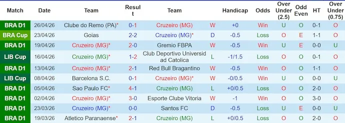 Cruzeiro đang cho thấy bộ mặt tích cực với 5 chiến thắng trong 10 trận gần nhất. Tuy nhiên, điều đáng lo là sự thiếu ổn định khi các kết quả thắng thua đan xen nhau. Trên sân nhà, đội bóng này có 3 chiến thắng trong 5 trận, nhưng thất bại trước U. Católica cho thấy khả năng kiểm soát trận đấu của họ vẫn chưa thực sự vững vàng.