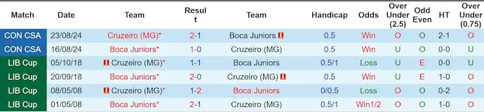 Lịch sử đối đầu cũng đang ủng hộ Boca Juniors với 4 chiến thắng trong 6 lần gặp gần nhất. Dù trên sân của Cruzeiro, cán cân có phần cân bằng, nhưng xu hướng chung vẫn cho thấy đội khách thường chiếm ưu thế trong các cuộc chạm trán.