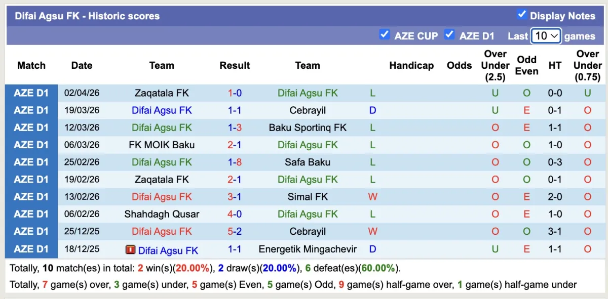 – Thống kê phong độ 10 trận đấu gần nhất của Difai Agsu
