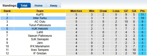 Thống kê phong độ, lịch sử đối đầu của Inter Turku đấu vs HJK Helsinki
