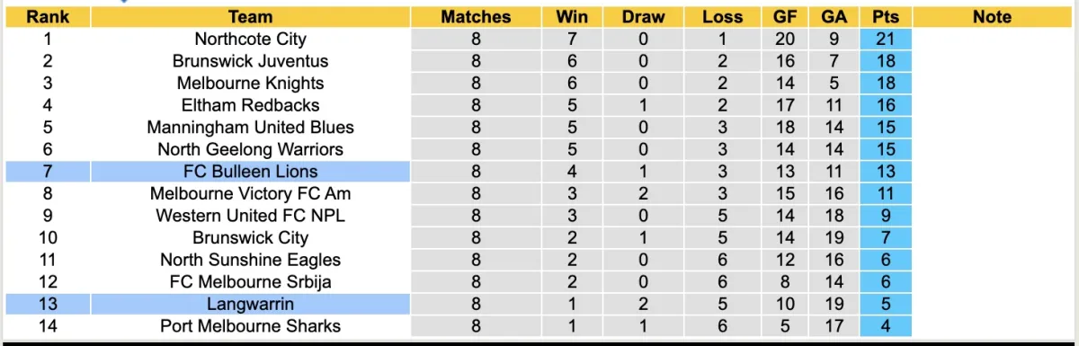 Sau những khởi đầu chưa tốt, Bulleen Lions đã cải thiện đáng kể phong độ khi giành chiến thắng trong cả 4 trận gần nhất trên mọi đấu trường. Với thành tích tệ hại hiện tại và việc thua trong 2 lần chạm trán gần nhất, không có gì ngạc nhiên khi Langwarrin phải nhận thêm một thất bại nữa.